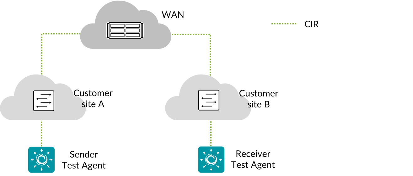 The test performed conforms to ► ITU-T Y.1564 section 8.1.2, test A.1 (“CIR configuration test: Simple CIR validation”).