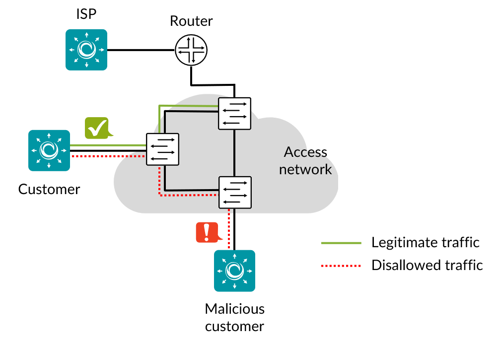 It is most convenient to place the ISP Test Agent in the same Layer 2 network as customers, as this is required for some of the tests (though not for all of them; the requirement is noted for each task type to which it applies). This setup makes it possible to run all security tests using the same network configuration.